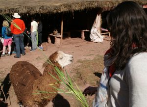 We visited two sites in the area. The first was a large Inca settlement in Pisac which gave up an opportunity to do lots of walking practise for our impending trail. The second was a charity project where we were shown how textiles are traditionally made in the area – we fed the llamas and alpacas who kindly donated their wool, and Soph had a chance to try spinning yarn, before buying some handmade leg warmers.