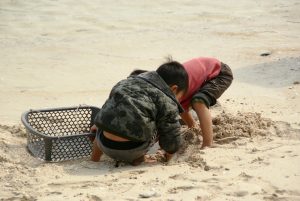 Kids looking for cockles