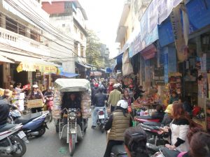 We stayed in a small hotel, tucked away in Hanoi’s Old quarter, and this was our favourite part of the city. Narrow streets crammed with stores, Ladies carrying their wares, street cafés taking over the pavement and mopeds packed with jangling teapots, huge blooms of flowers and kumquat trees. It was full of life, and there was something which caught the eye in every direction!